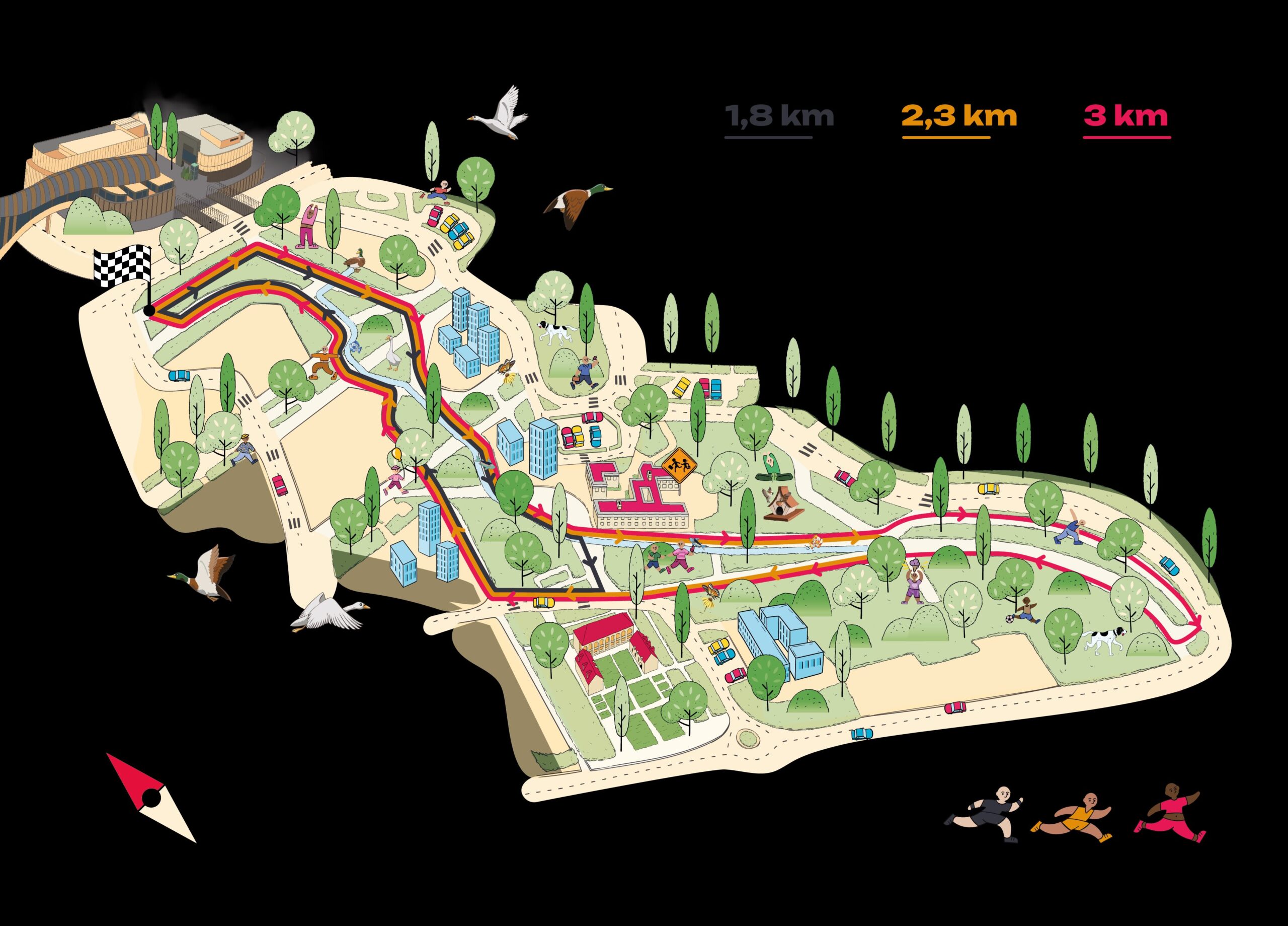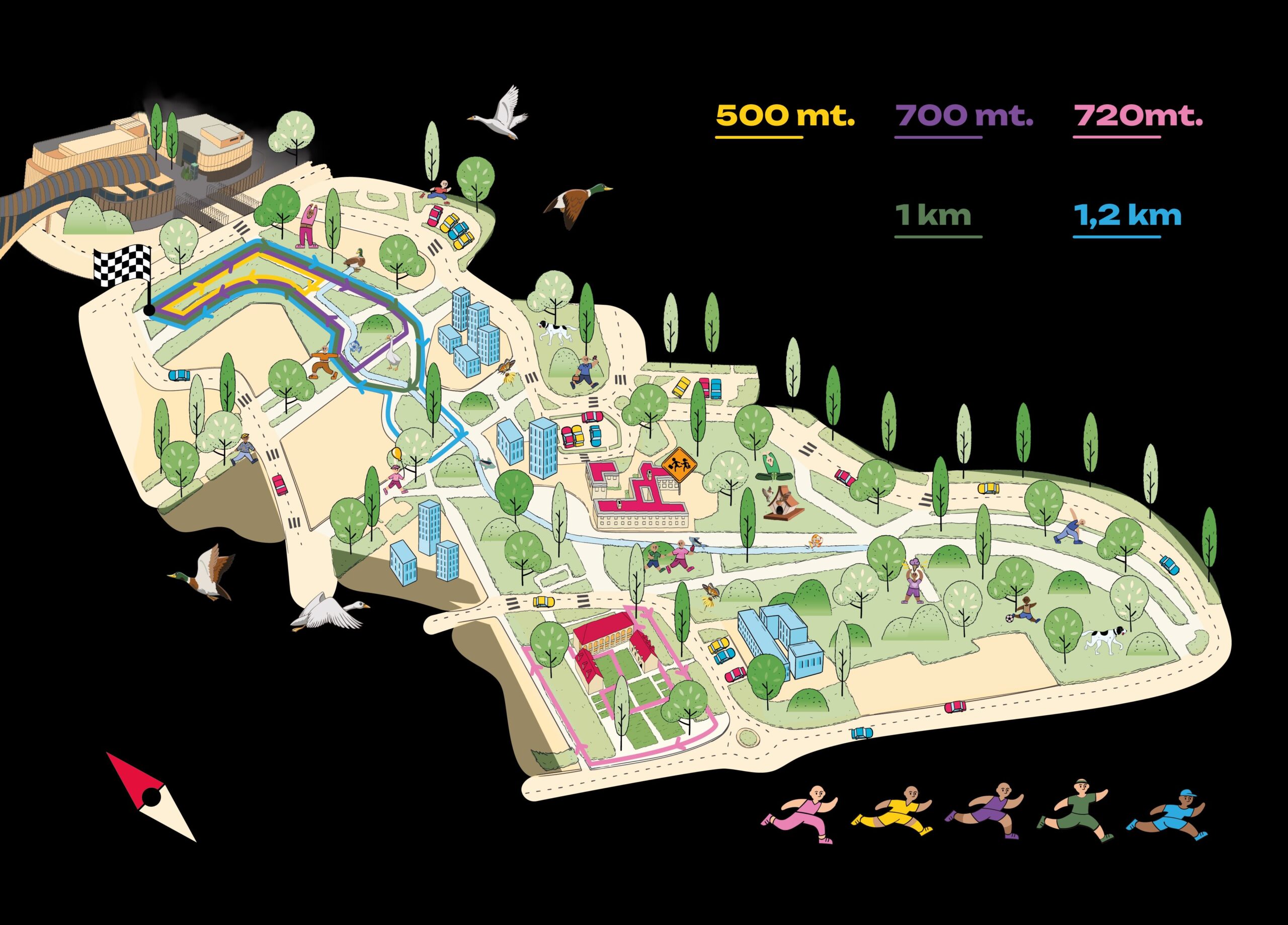 I percorsi di corsa sono stati progettati per includere tutti, bambini e adulti di ogni età, offrendo esperienze di camminata e di corsa adatte a ogni livello di preparazione o esigenza di fruizione, dal gioco alla performance agonistica. Tutti segnalati con nomi e colori evocativi, che richiamano la biodiversità e l’identità del quartiere, i tracciati si snodano dall’area nord del parco tra gli spazi verdi ombreggiati, il corso d’acqua, le residenze urbane smart e i punti di ristoro nelle vicinanze.